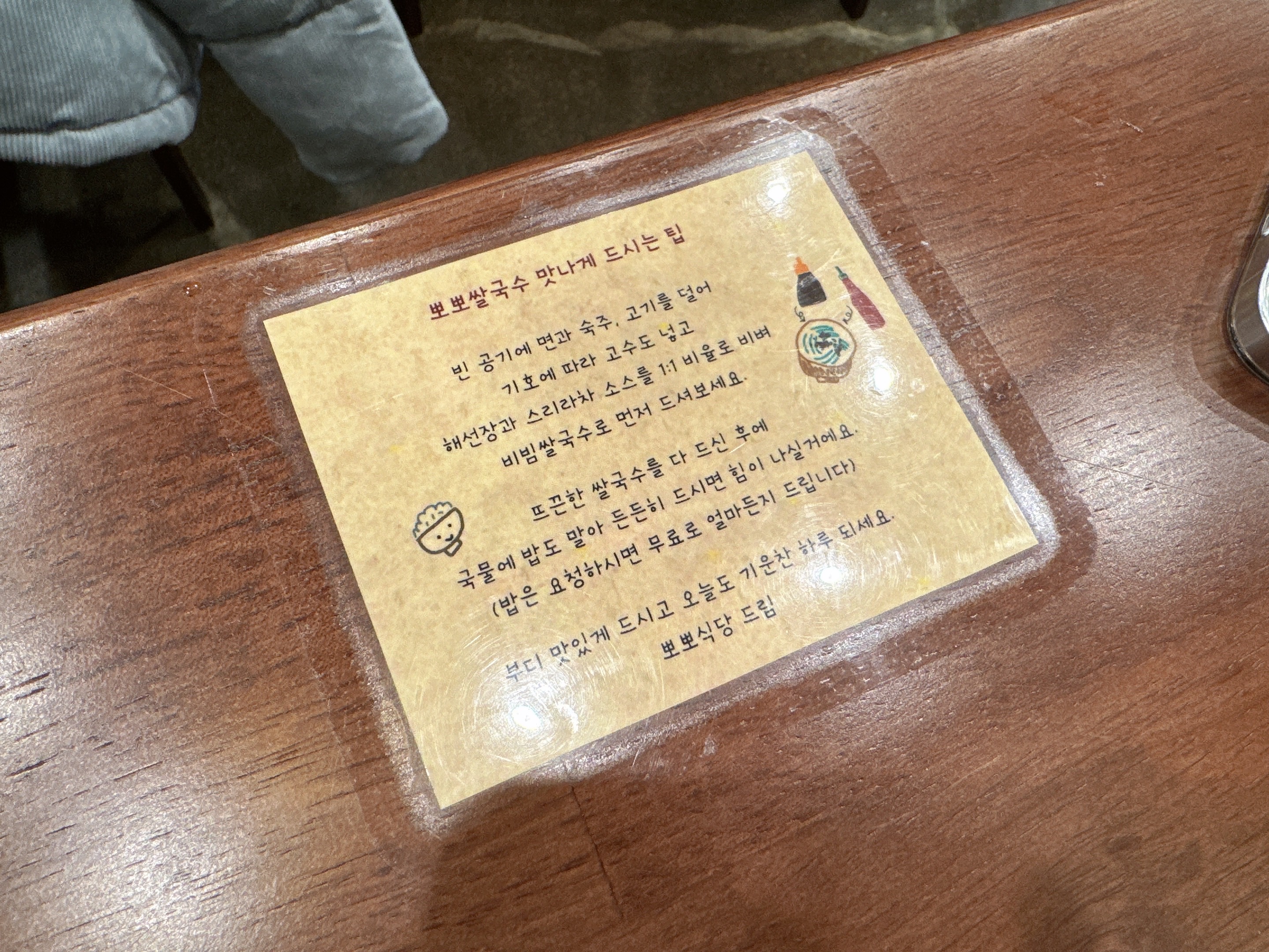 음식을 먹는데 전혀 불편함이 없게끔 자리가 배치되어 있다.