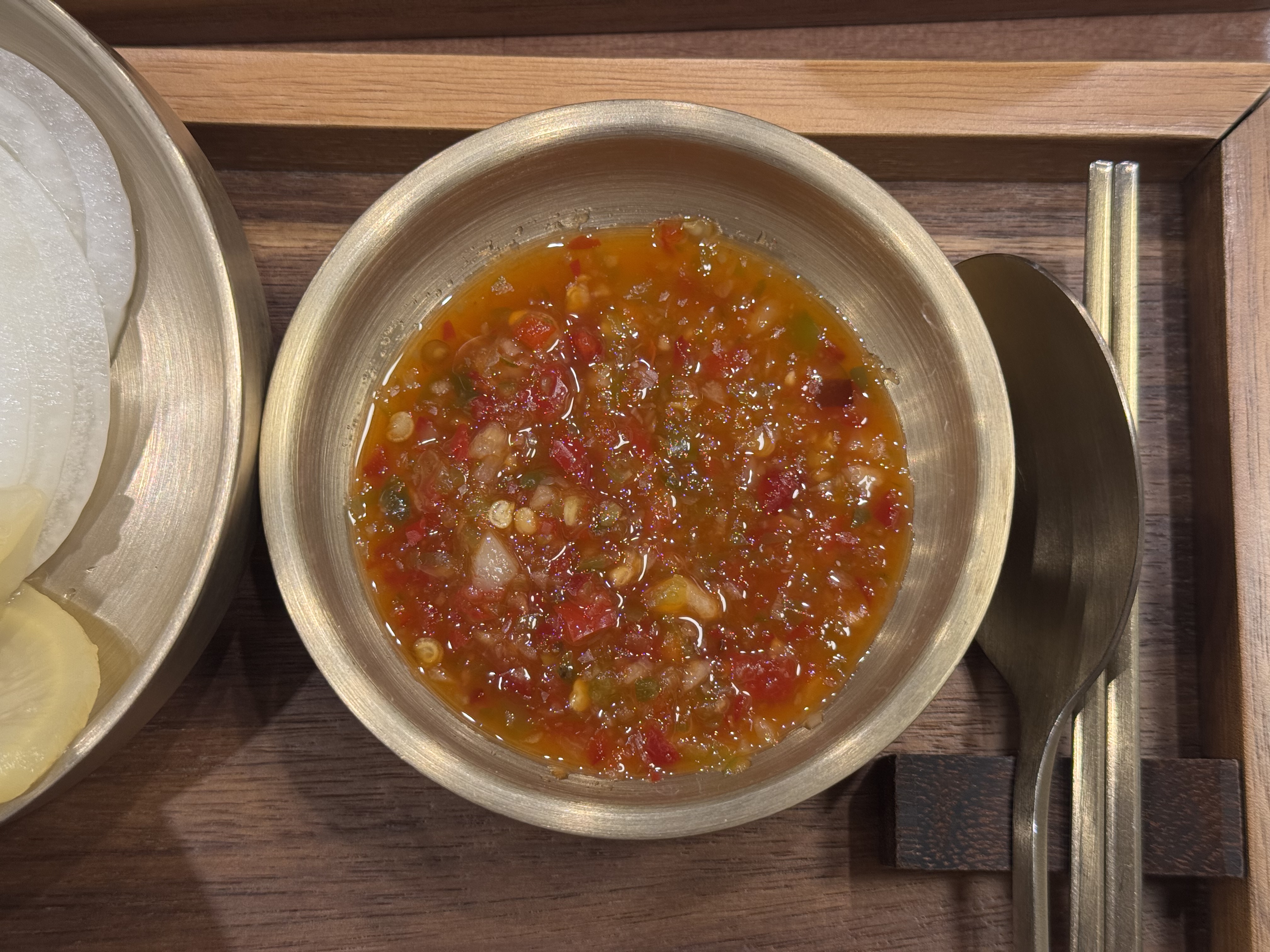 다른 데서는 본 적이 없는 것 같은데 고기를 찍어 먹거나 기본 쌀국수의 국물에 넣어 먹으면 매콤함이 추가된다.