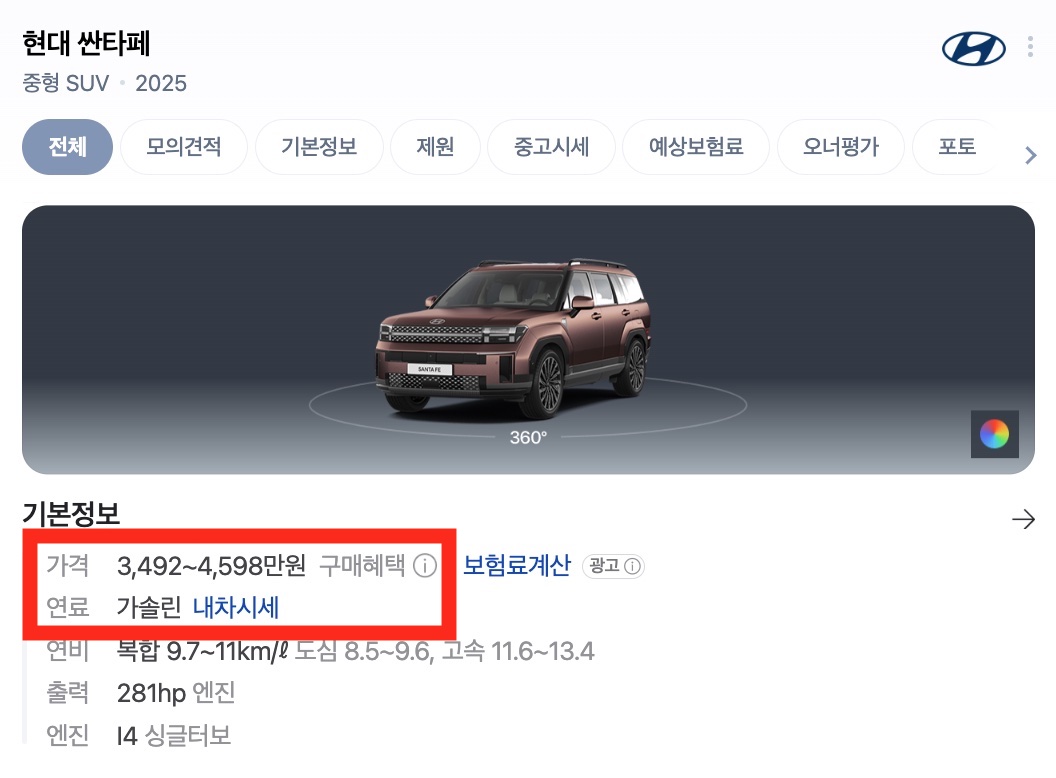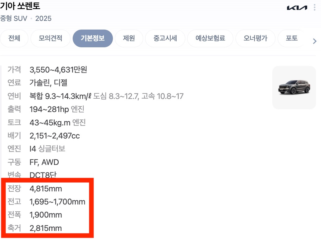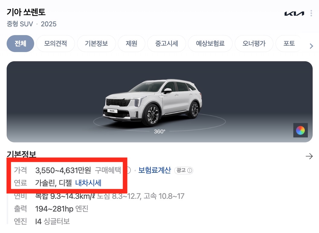 다만 쏘렌토는 디젤 모델이 있다는 것이 차이점이겠다.