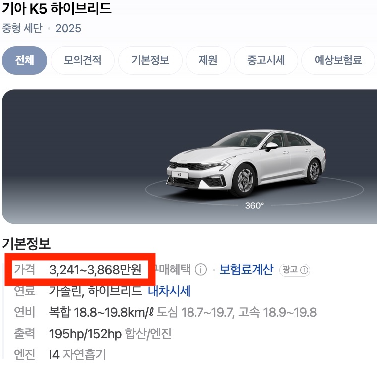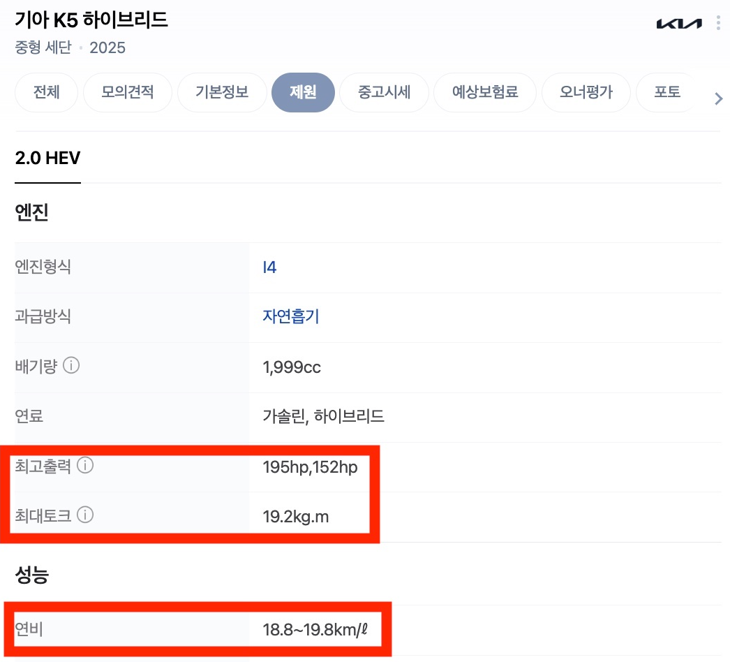 연비는 K5가 조금 더 나은 듯 하지만