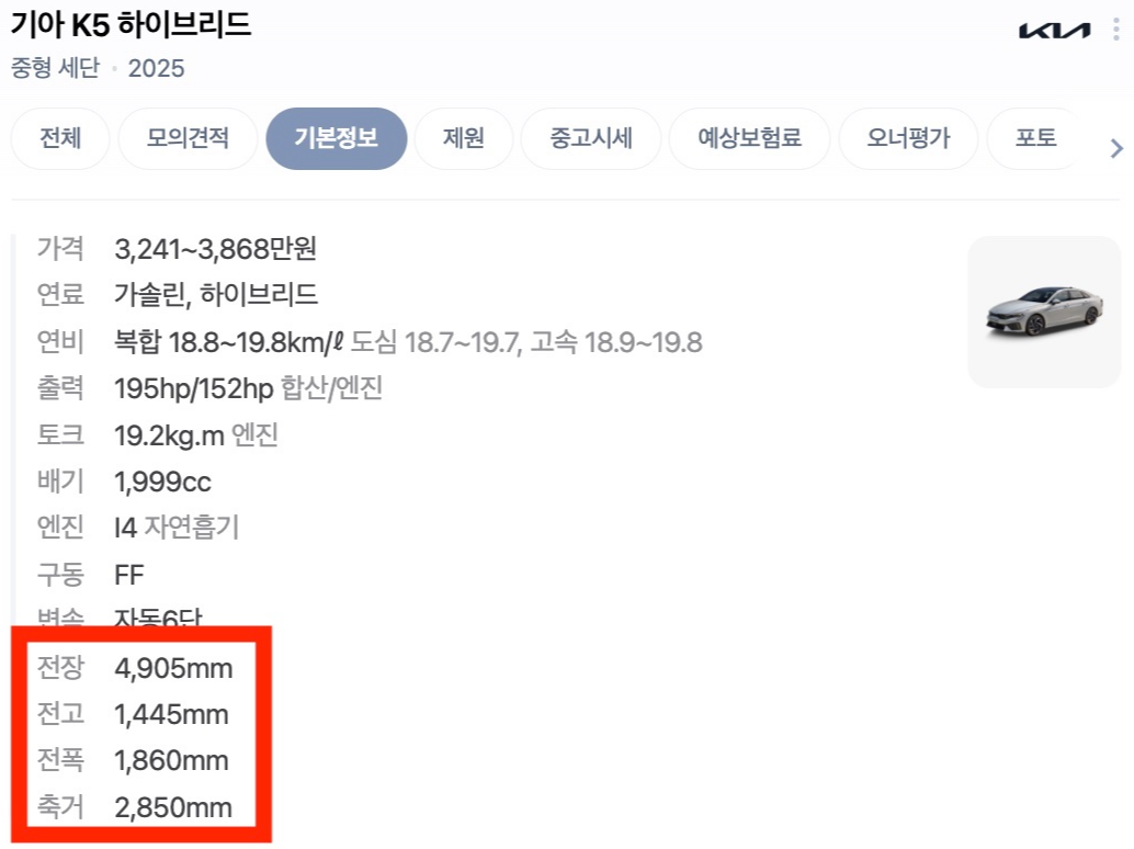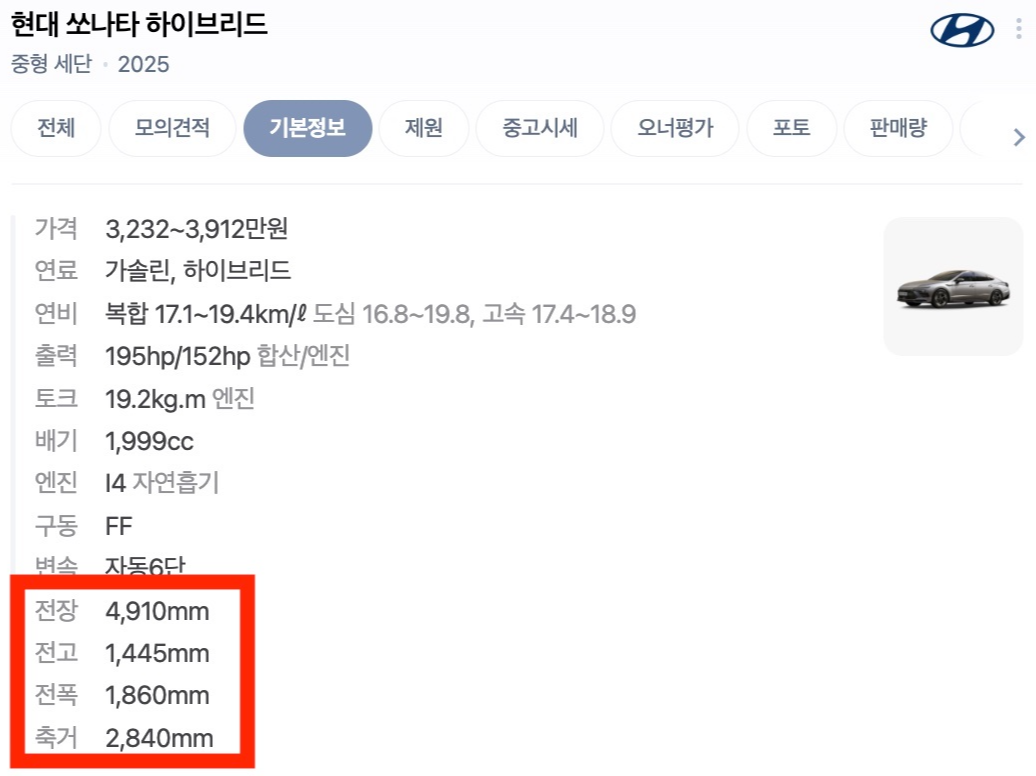 차량의 크기는 거의 똑같다고 할 수 있겠다.