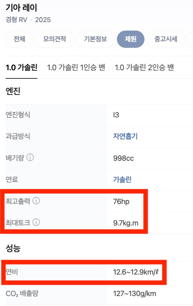 연비를 보니 캐스퍼가 좀 더 잘 나온다.